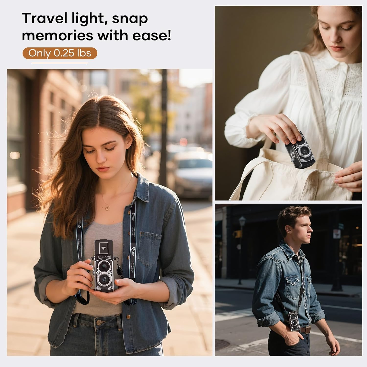 كاميرا TLR الرقمية الكلاسيكية هي رقمية بالكامل بنسبة 100٪، مما يمنحك تحكمًا أكبر في صورك ومقاطع الفيديو الخاصة بك! تتميز الكاميرا بمستشعر بدقة 12 ميجابكسل ويمكنها تصوير فيديو بدقة 1080p، مما يجمع بين الوظائف الكلاسيكية والتكنولوجيا الحديثة.