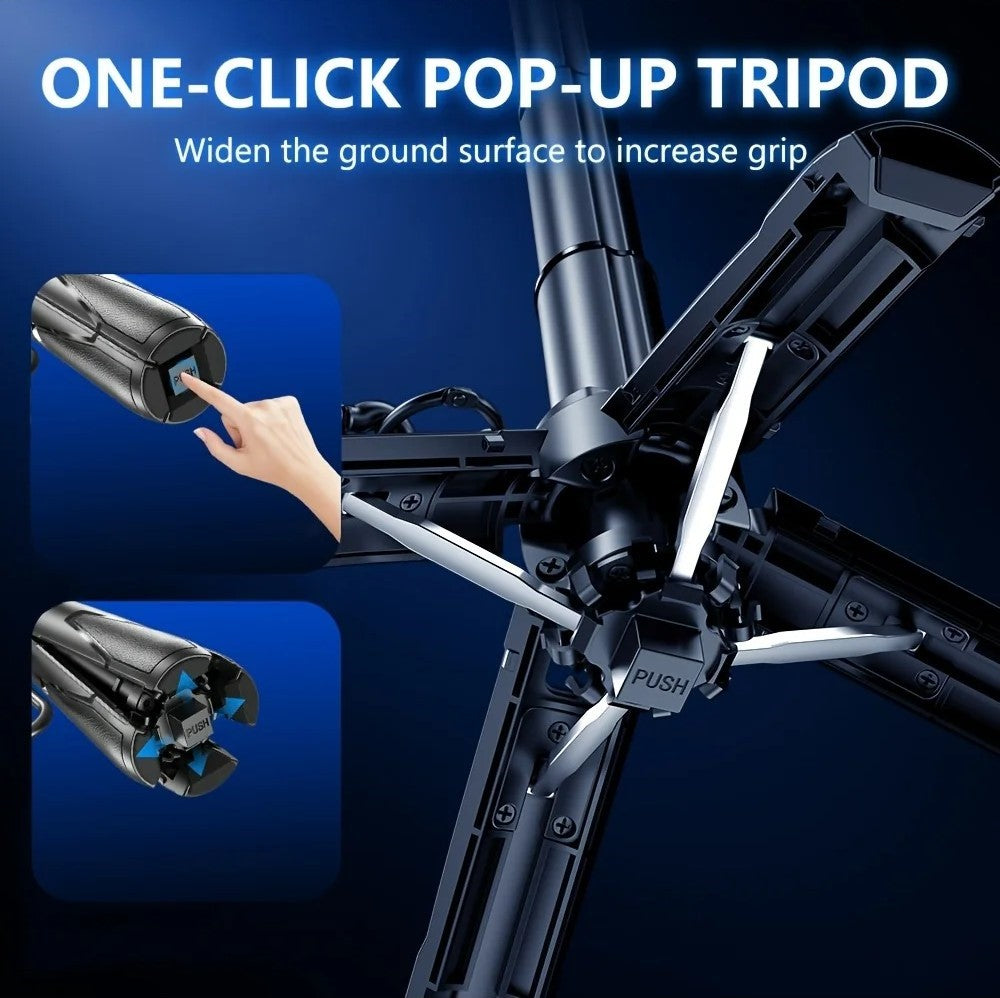 بضغطة واحدة فقط، يتم فتح الأرجل تلقائياً لتشكل قاعدة أوسع وأكثر ثباتاً. تصميم ذكي يعزز من قوة التثبيت على مختلف الأسطح ويوفر تجربة تصوير أكثر أماناً وثباتاً في كل مرة.